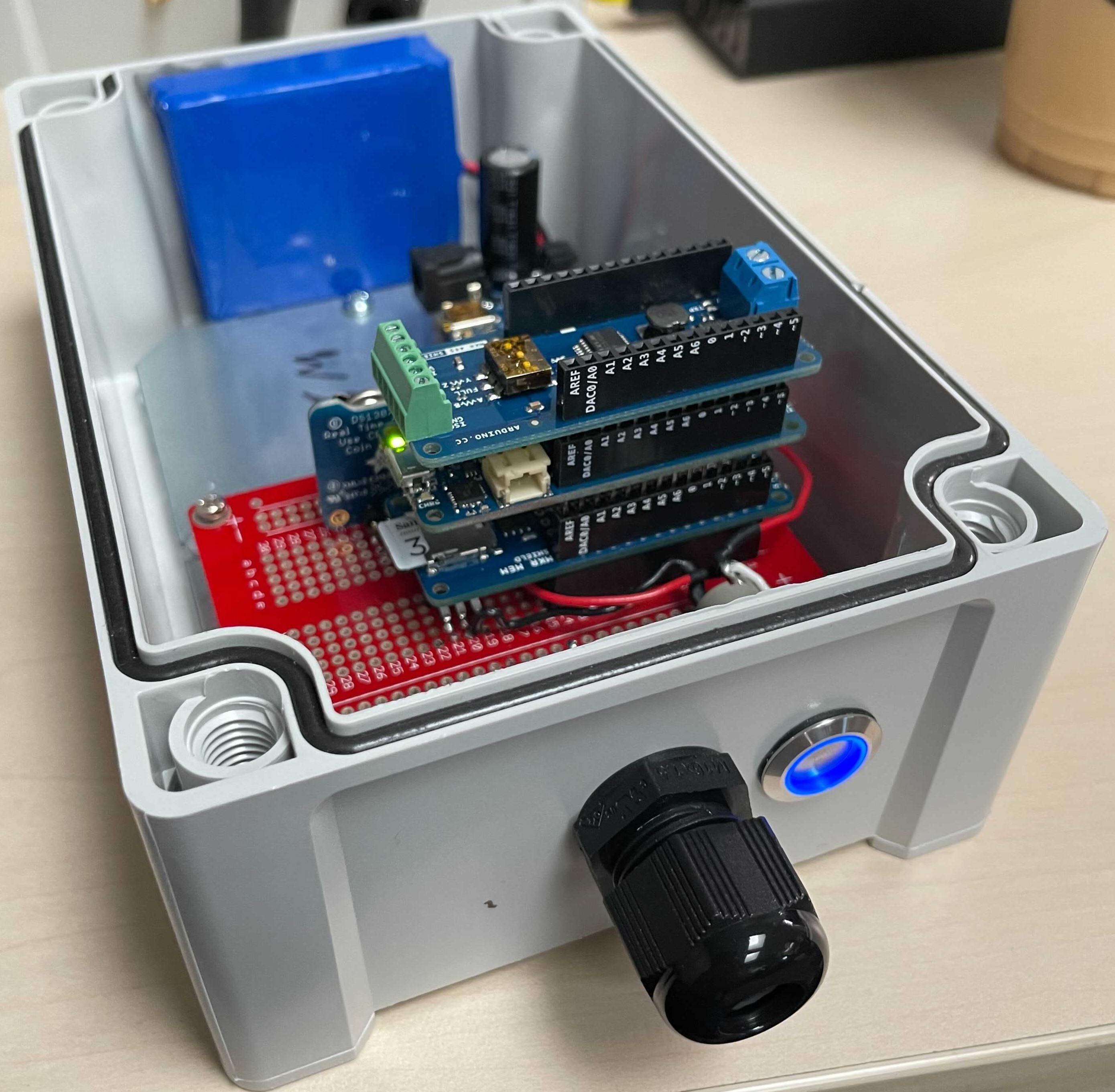 At startup, the LED on the button switch flashes repeatedly for 10 seconds indicating the system is trying to connect to wifi. After successful connection, the led on the switch and MKR 1010 unit will flash periodically based on the interval set in relation to data being logged to SD card.